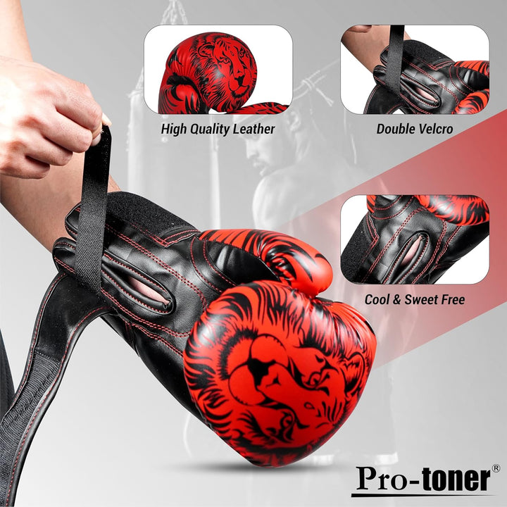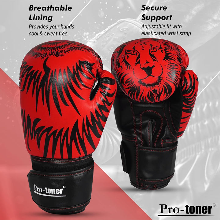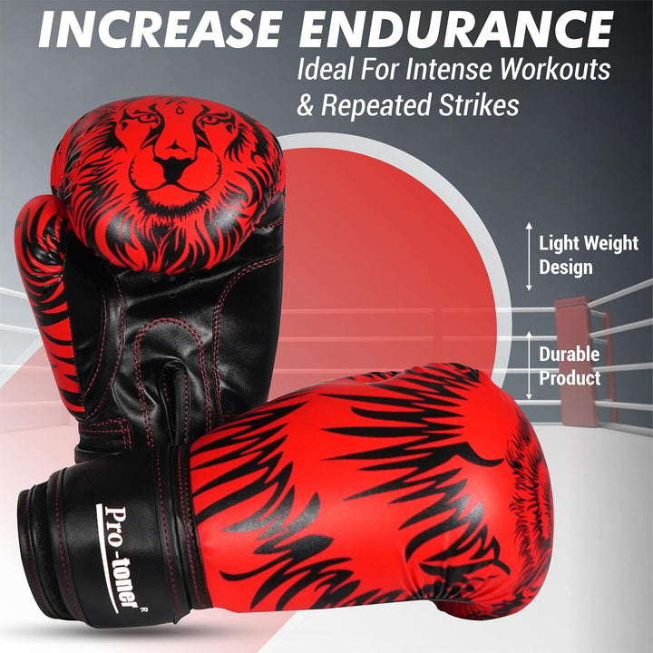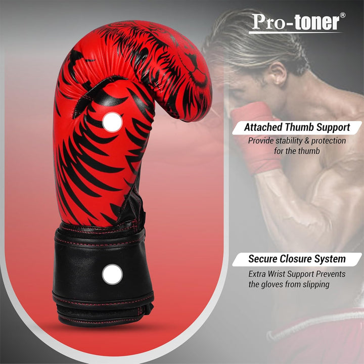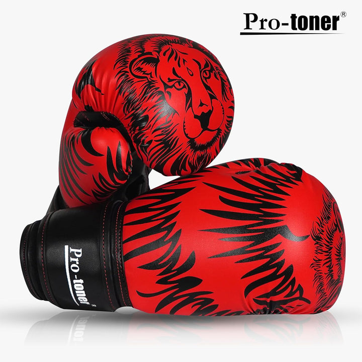 Pro-Toner Boxing Gloves, Red and Black Tiger Print Design, Faux Leather, for Men and Women (Red/Black, 12 oz)