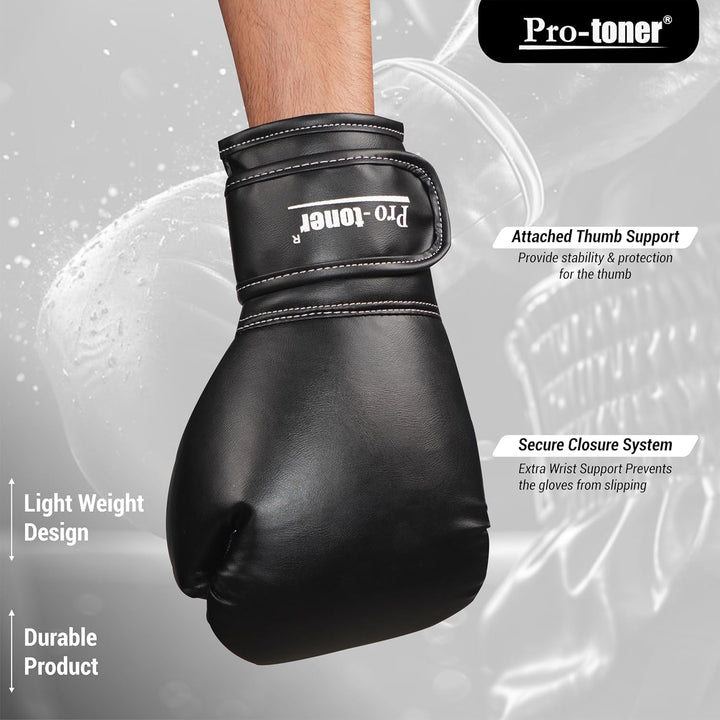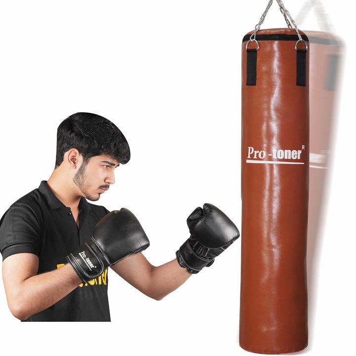 Protoner Boxing Training Set, 48-Inch Punching Bag with 12 Oz Gloves and Chain, Black (Filled Tan+Gloves+Chain)